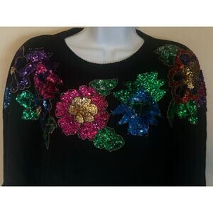 Vintage B.I.B S.M.L Sport Black Sweater Embroidered-Beaded Floral Design