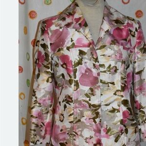 This vintage silk blazer is like new. Shoulder pads & all!! So many beautiful, happy colors. The measurements are 25" Long x 20" chest (armpit to armpit) and this does have a lining so keep that in mind for the fit!