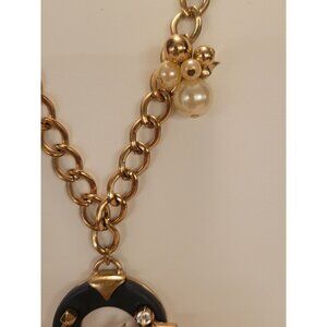 Unique Betsey Johnson vintage charm necklace ( cable chain) featuring a horseshoe pendant with roses atop the #13, rhinestones, and pearl accents. Ideal for adding a unique touch.. Multi color faux pearl, coral, and turquoise stones.