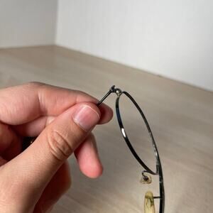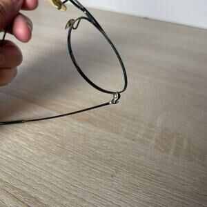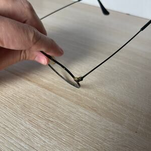 There are signs of wear and age on the frame. The screws on the outside of the frame connecting the arms have been repaired/glued together. PLEASE SEE PICTURES