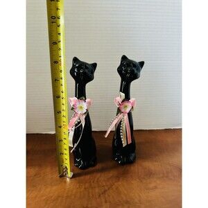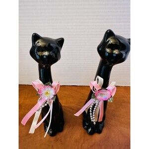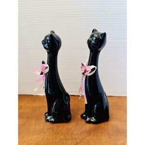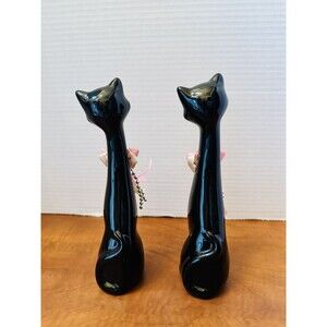 Vintage BLACK CATS Pottery Figurines, Sitco Importing NY