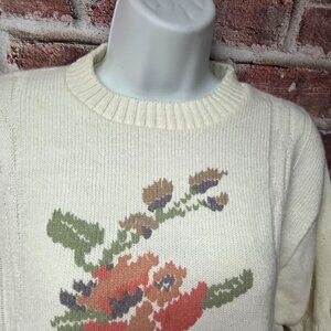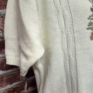 Vintage BLAIR Floral Knit Short Sleeves Sweater Large