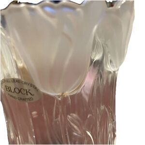 Vintage BLOCK Retired Frosted Tulip 8" Vase 24% Full Lead Crystal New In Box