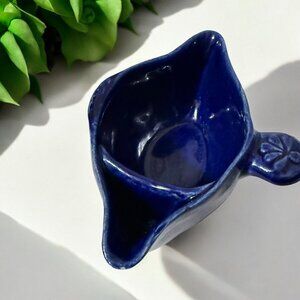 FEATURES: A vintage cobalt blue glazed pottery fat separator with two spouts, and a handle / see photos for more details