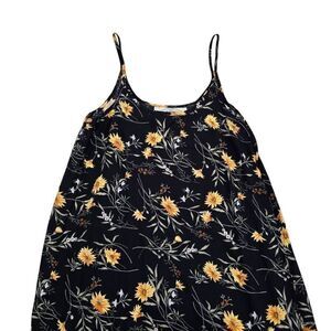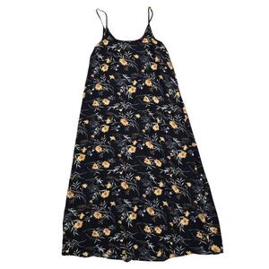 Vintage B.Moss Midi Dress Women's Small Black Floral 100% Rayon Spaghetti Strap