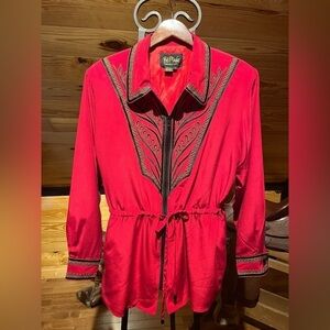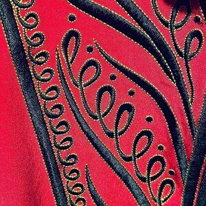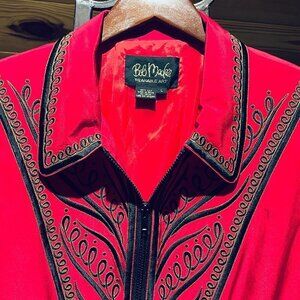 Vintage BOB MACKIE Wearable Art 100% SILK Red and Black Embroidered Jacket