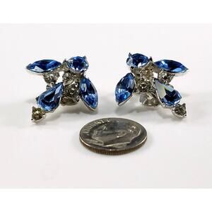 Vintage BOGOFF Blue Rhinestones Clip Earrings, "Vintage Jewels", 1950s