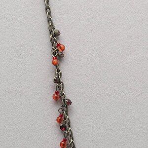 Vintage BOHO Silver Tone Filigree Necklace With Red Gemstone Dangling Beads
