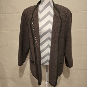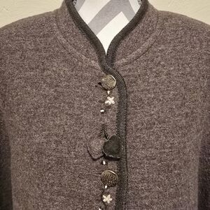 Vintage BOOS Pure New Wool Jacket With Edelweiss Embroidery Brown Size 46.