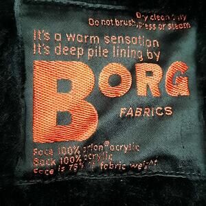 Vintage BORG Fabrics 40R Black Faux Fur Coat Liner Deep Pile USA Orion Acrylic