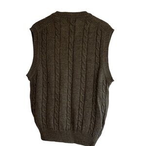 Vintage Men's BOSTON TRADERS 100% Wool V-Neck Cable Knit Sweater Vest Brown XL FLAWS