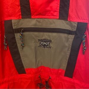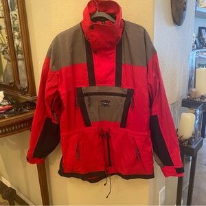 Pre-owned in great condition with no rips or stains. Vintage red and gray anorak ski jacket. Missing the hoodie. The tag inside is faded. Can be unisex. Runs a little big. Please check measurements. Comes from smoke and pet free home.