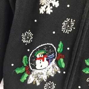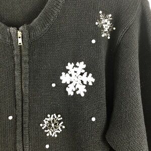 Vintage B.P. Design Beaded Snowy Christmas Snow Globe Zip Front Cardigan Size L