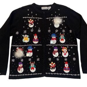 Vintage B.P. Design Christmas Sweater Front Zip Snowmen Long Sleeve Women Large