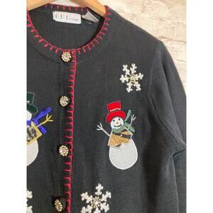 Vintage B.P. Design Sweater Womens Medium Christmas Snow Men Embroidered Ramie