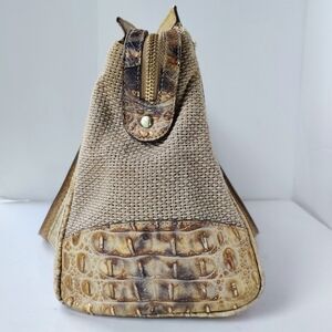 Vintage BRAHMIN Woven Croc Embossed Leather Bag Tote Beige Tan Metallic Large