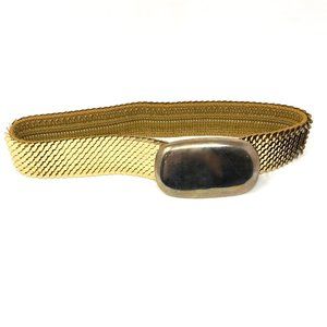 Vintage BRASS Fish Scale Belt, Retro Metal Belt, 80's Stretch Belt