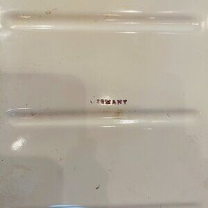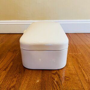 The Vintage Bread Box Porcelain Enamelware Storage Bin, also known as a Brotkasten or Broodtrommel, is a charming piece of kitchen decor that brings a touch of retro style to any home. This offwhite metal bread bin features a rectangular shape with hinges for easy access. Made in the Netherlands during the 1960s, it showcases a vintage design that is perfect for storing and displaying bread in a nostalgic way. The item measures 24 cm in length, 15 cm in height, and 47 cm in width, making it a functional and decorative addition to adult kitchens.
