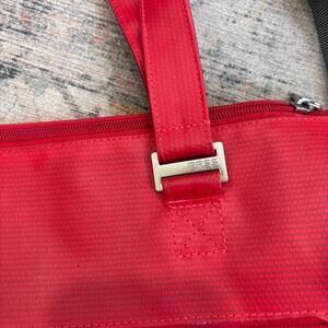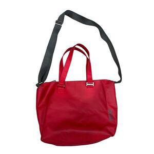 Striking punch-red vintage BREE travel tote in durable, wipe-clean PVC with double shoulder straps and a crossbody option—the perfect carryall for airport runs, commuters, and weekend trips. Structured, roomy silhouette that fits daily essentials, tablet, and more; styles with everything from trench + denim to athleisure. Measurements are in the photos.
