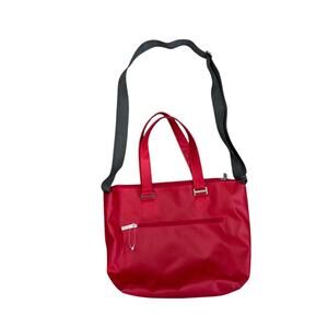 Style Tags: vintage tote, travel bag, commuter, crossbody tote, utility, bright red, minimalist, Y2K revival, weekender, shoulder bag