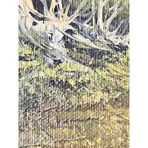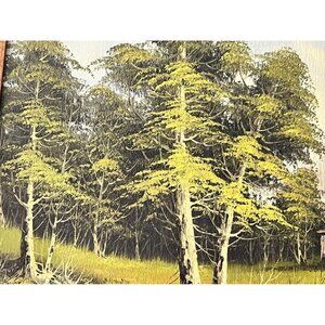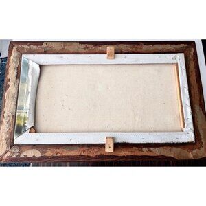 Condition: Fair Vintage Condition. Seems like the painting was transferred to the current carved oak frame and resized at some point (see back photo). The is a small paint chip missing on the left corner (see photo). Could be easily fixed by adding some mixed green oil paint. Chip on top of wood frame right side.