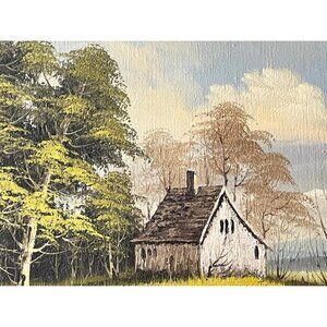 Vintage BRENNER ART Oil Painting Signed-Brenner, cabin scene