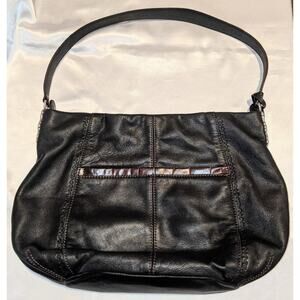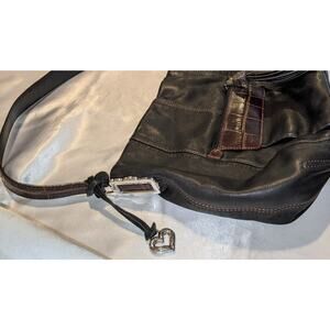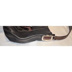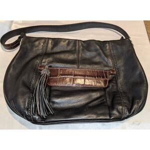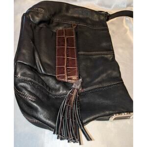 Vintage BRIGHTON Black & Brown Leather Shoulder Bag Handbag + Tassel & Bag Charm