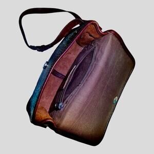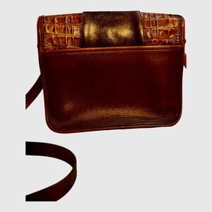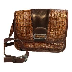 Vintage BRIGHTON Black Brown Pebbled Leather Croc Shoulder Messenger Bag Purse