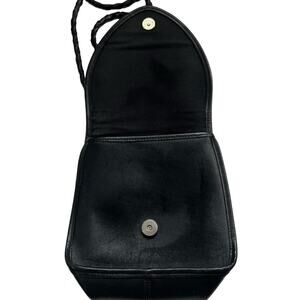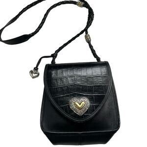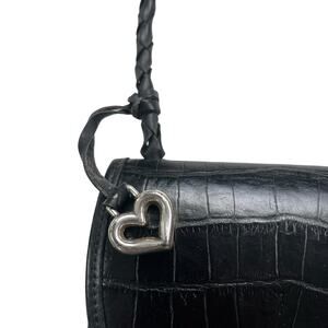 Vintage BRIGHTON Black Leather Croc Embossed Flap Crossbody Structured Crossbody