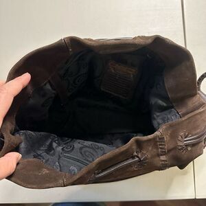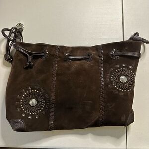 Vintage BRIGHTON MONTREAL Montana Suede SUNBURST SHOULDER BAG Brown hobo