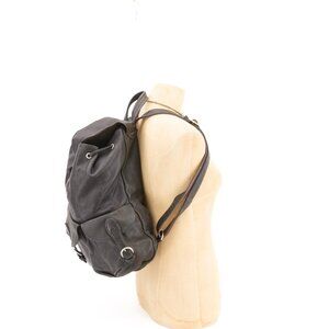 This is actually a dark dark brown leather, looks black. London Fog brand all genuine leather. Lots of space soft yet structured style tons of side pockets. Cinch top with buckle flap, unlined interior. Great timeless style with this vintage black leather backpack. Featuring a classic buckle flap closure and multiple compartments, this unisex bag is perfect for school, travel, or everyday adventures. Crafted from durable leather, it offers both functionality and enduring appeal.