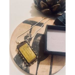 Very cute and unique vintage embroidered phrase pendant. The innovative design stands out in a crowd and has a fashionable appearance. Comes with a chain. NWT #vintagenecklace, #vintagejewelry, #embroiderdnecklace, #embroideredjewelry, #bohonecklace