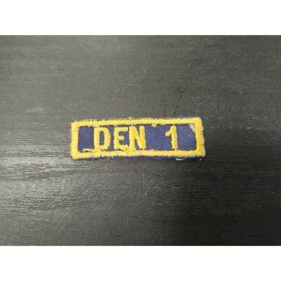 Original Cub Scouts of America "Den 1" embroidered patch in blue and gold. Worn on the right sleeve of the Cub Scout uniform to identify a scout's den. This vintage version shows signs of age and light wear, making it a great addition to any Scouting memorabilia collection or uniform restoration.