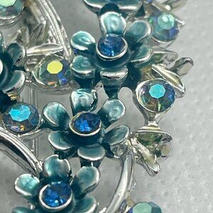 🔥Vintage BSK Blue Floral Rhinestone Brooch Pin