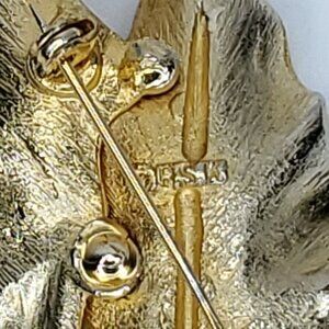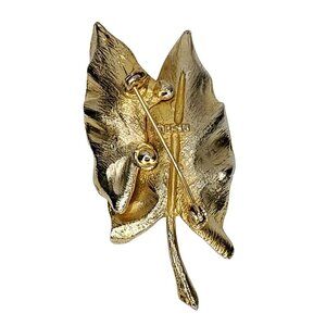 Vintage BSK Leaf Brooch Textured Goldtone 2.5"
