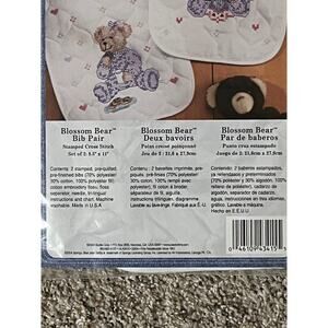 Vintage BUCILLA Blossom Bear Bib PAIR Stamped Cross Stitch KIT 2004 ONS #43415