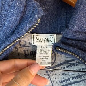 Vintage BUFFALO David Bitton Blue Lambswool Cable Knit Zip Up Fisherman Core