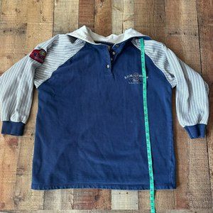 Vintage B.U.M. Equipment Blue Polo Shirt Striped Sleeves Embroidered Logo -L