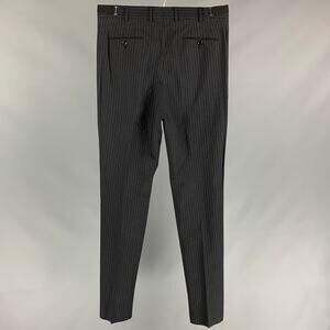 Vintage BURBERRY PRORSUM 32 Charcoal & Grey Chalkstripe Wool Zip Dress Pants