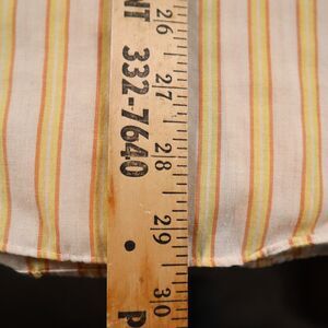 This vintage BVD shirt is a classic addition to any wardrobe. With a striped pattern, long sleeves, and a collared neckline, it's perfect for any occasion, whether it's a casual day out or a party. The shirt is made of lightweight cotton and is machine washable for easy care. It comes in a size 16 1/2 34 and has a classic fit. The shirt features a button closure and a point collar style. Its yellow orange color and classic theme make it a versatile piece for any season, whether it's summer, fall, or spring. This shirt is perfect for men who appreciate a vintage look in their wardrobe.