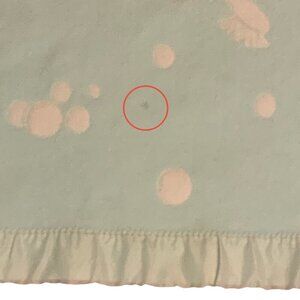 Satin trim has pulls and is loose in a few areas. Blanket is clean, but has some faint stains. Please see photos to understand condition.