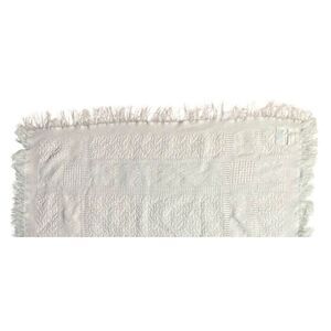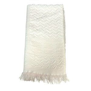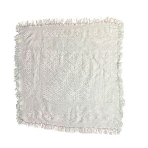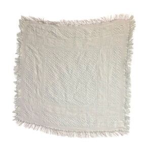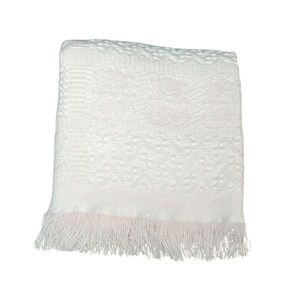 Vintage Baby Blanket Pink White Acrylic Fringe Teddy Bears Fancy Weave Japan