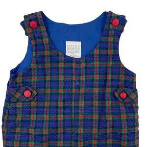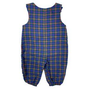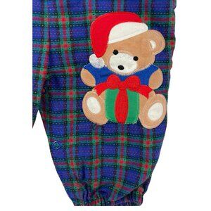 Vintage Baby Boy Christmas Romper, Plaid Teddy Bear Applique Overall Size 6-9 mo