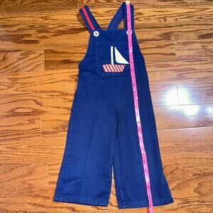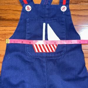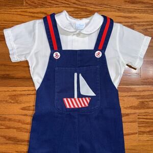 Vintage Baby Boys Red White Blue Sailboat Sailor Shirt & Overalls Set