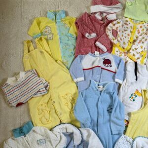 Vintage Baby Clothing Velour Outfit Onesie Bundle in pre owned condition. Please note, clothing is in fair - great condition. Mixed clothing sizes.