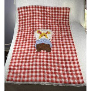Vintage Baby Crib Toddler Quilt Easter Bunny Red White Gingham 53”x39” with lace