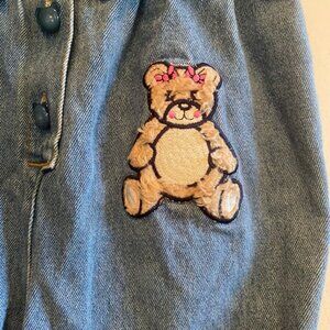 Vintage Baby Denim Jumpsuit Teddy Bear Patch Bows Size 24 Months