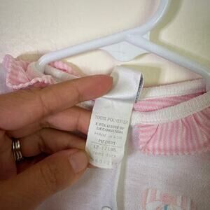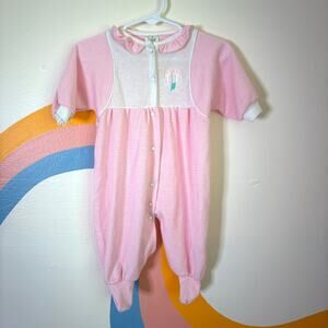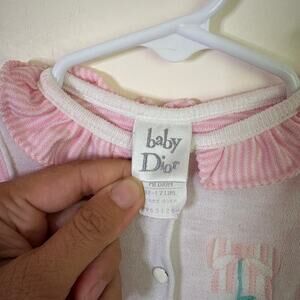 Vintage Baby Dior Footie Girls M 3-6 Months Pink Striped Embroidered Ruffle