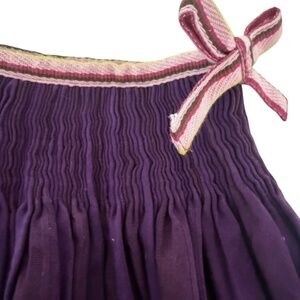 This adorable skirt is from Baby Gap. Superior quality. Purple on purple stripe with hot pink second layer. The top is a gathered smock. Hidden side zipper. Light pink stripe band with fixed bow at the top.