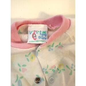 1 floral footed sleeper with pink trim and button closure